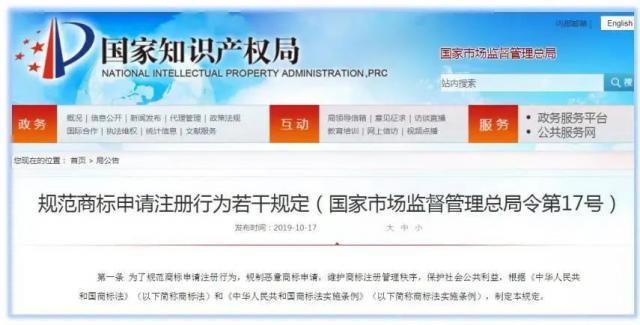 3 月 26 日,浙江省绍兴市市场监管局立案的疫情期间申请注册"李文亮"商标案有了处理结果,对申请人杨某芳、代理机构绍兴某知识产权代理有限公司及其直接责任人员陈某刚作出责令改正违法行为,并分别处以 2000 元、20000 元和10000 元罚款的行政处罚。据悉,这也是全国运用《规范商标申请注册行为若干规定》(以下简称《规定》)首次针对商标申请人开出的罚单。
